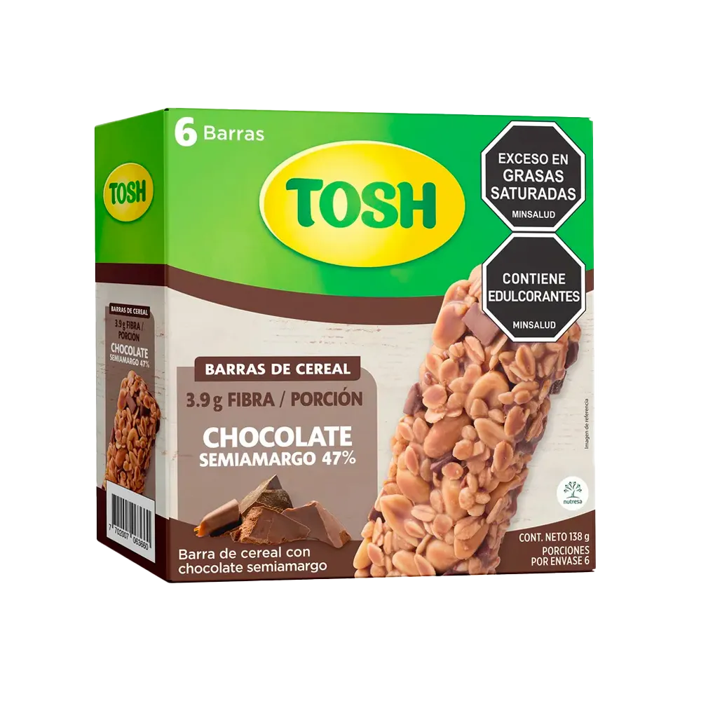 Barra de chocolate tosh con trozos de chocolate , barras saludables de tosh, a domicilio en bucaramanga, barra de cereal variada