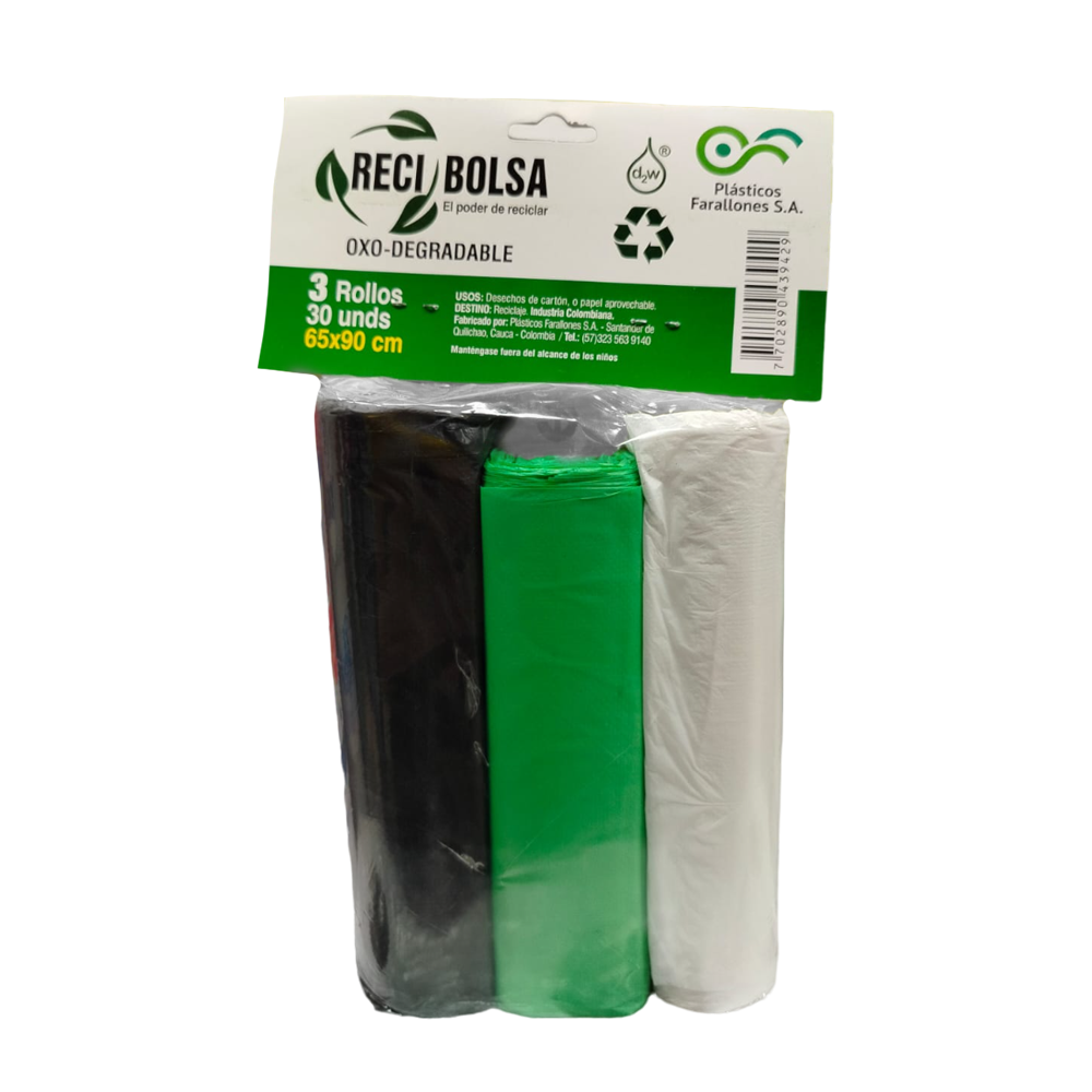 Bolsa Aseo Rollo 65x90 (Verde-Negro-Blanco)