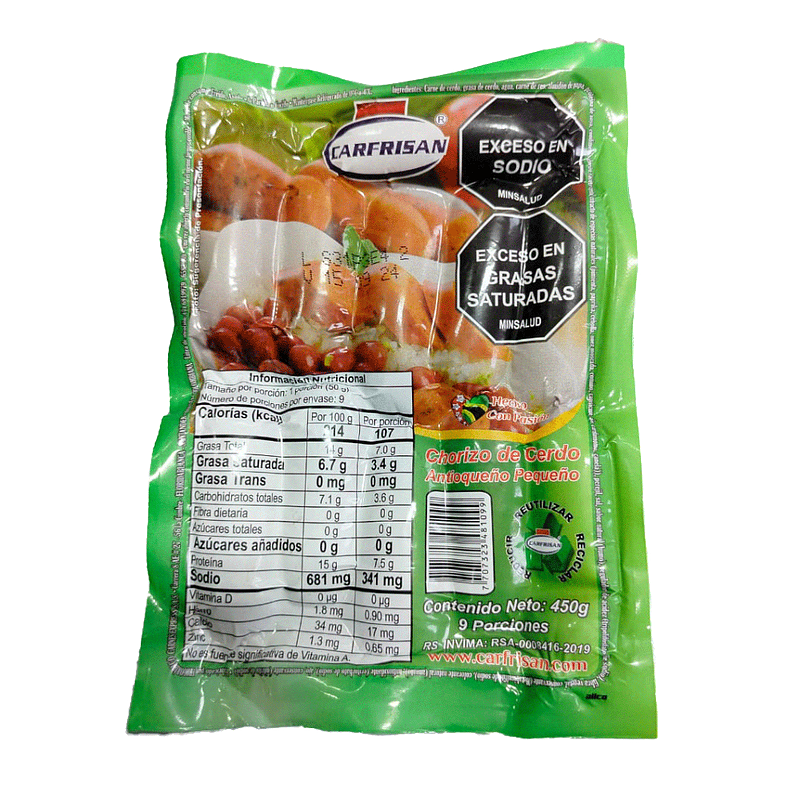 Chorizo Antioqueño Carfrisan Pequeño