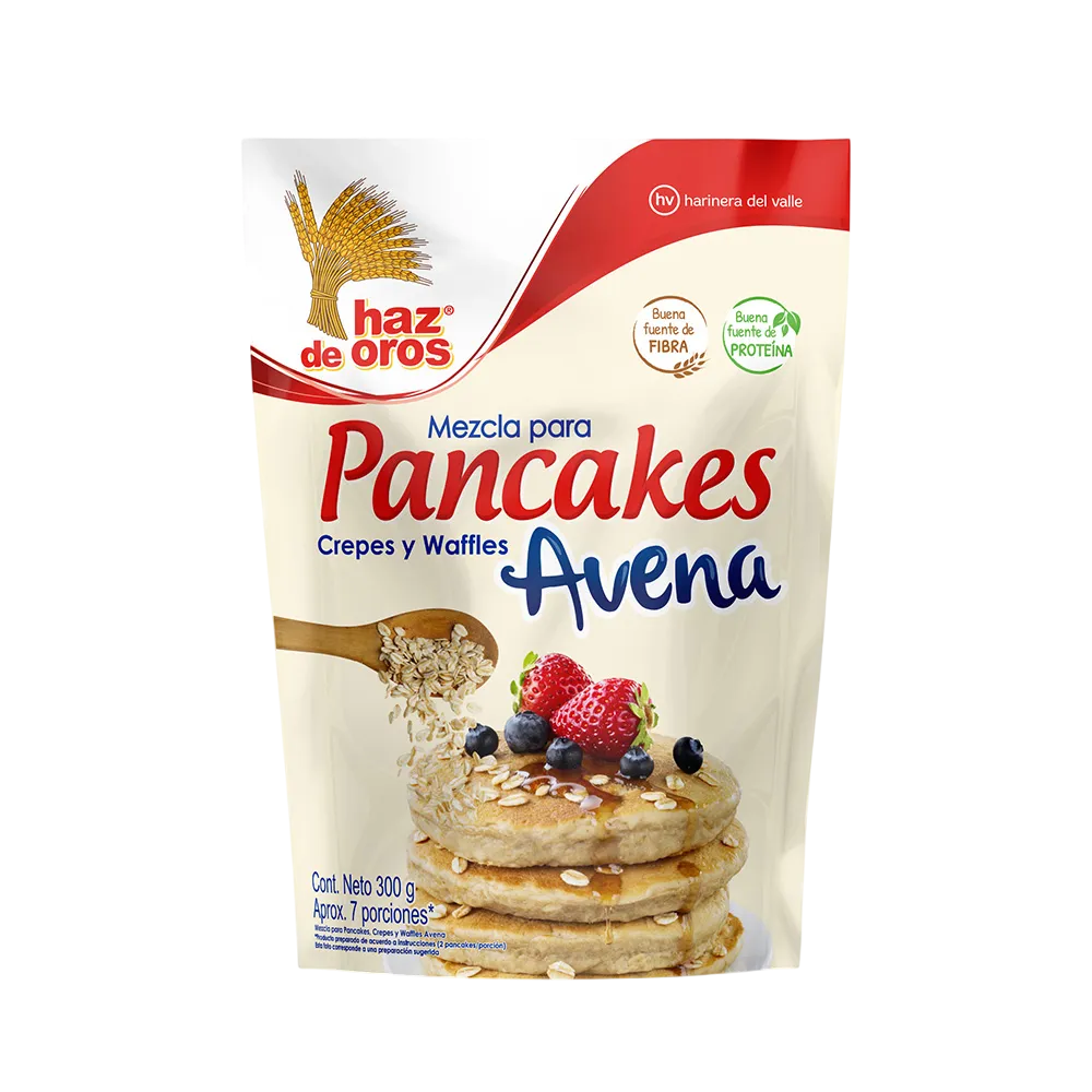 excelente calidad, haz de oros, es una mezcla sabor avena que te permite preparar fácilmente los más deliciosos Pancakes,