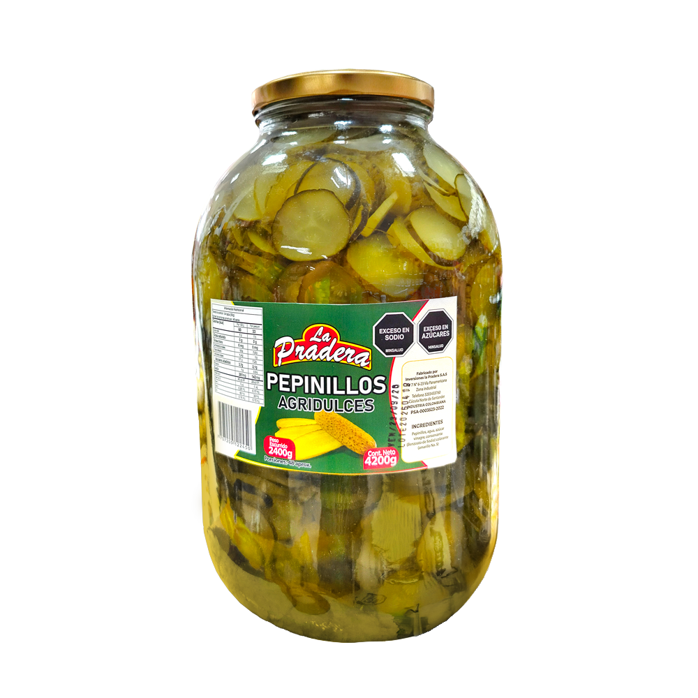 al mejor precio en bucaramanga, pepinillos, agua, azúcar, sal, estabilizante , enteros agridulces, la pradera