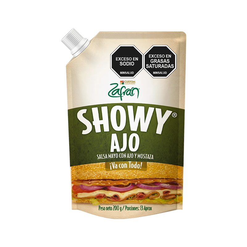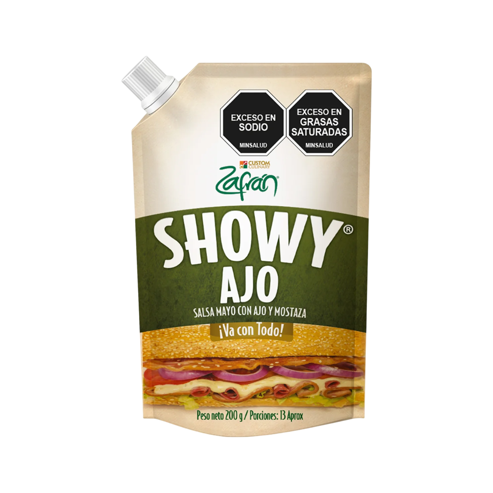 zafran showy ajo, ofrece una perfecta combinación de especias, base mayonesa y mostaza con el inigualable sabor del ajo.